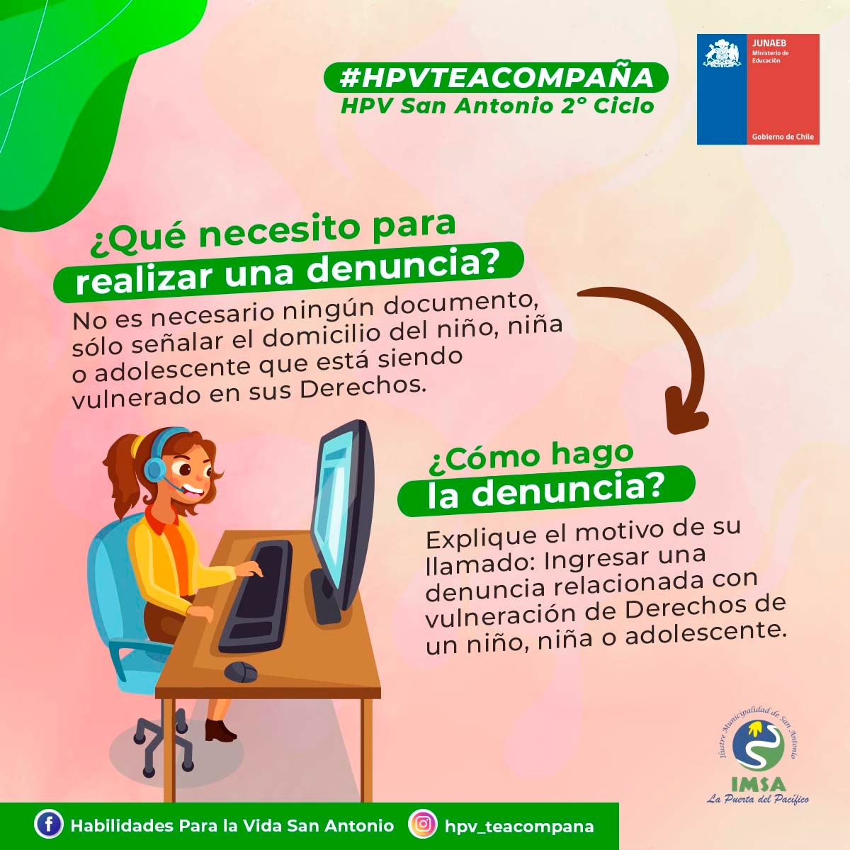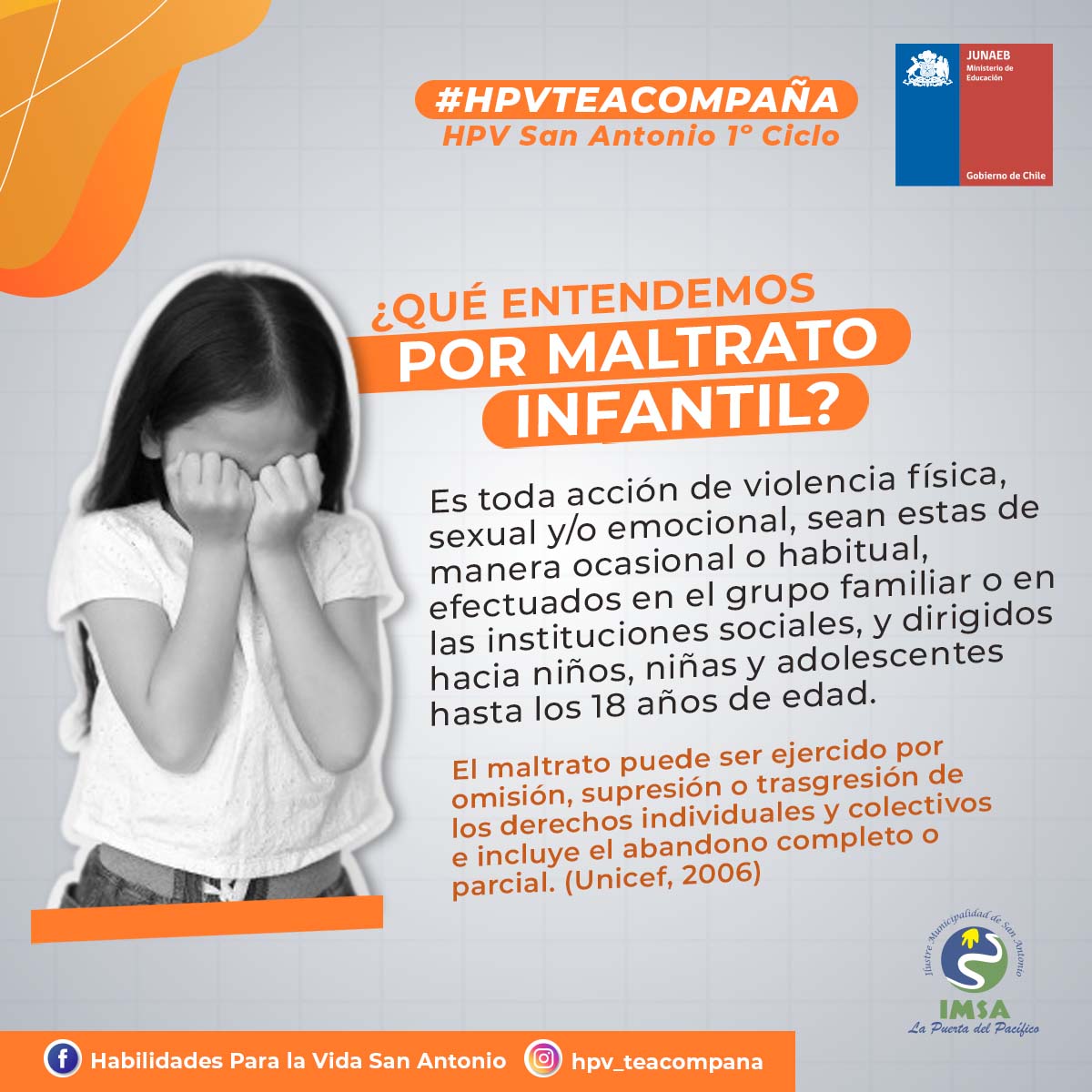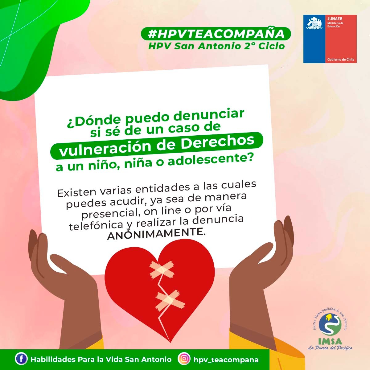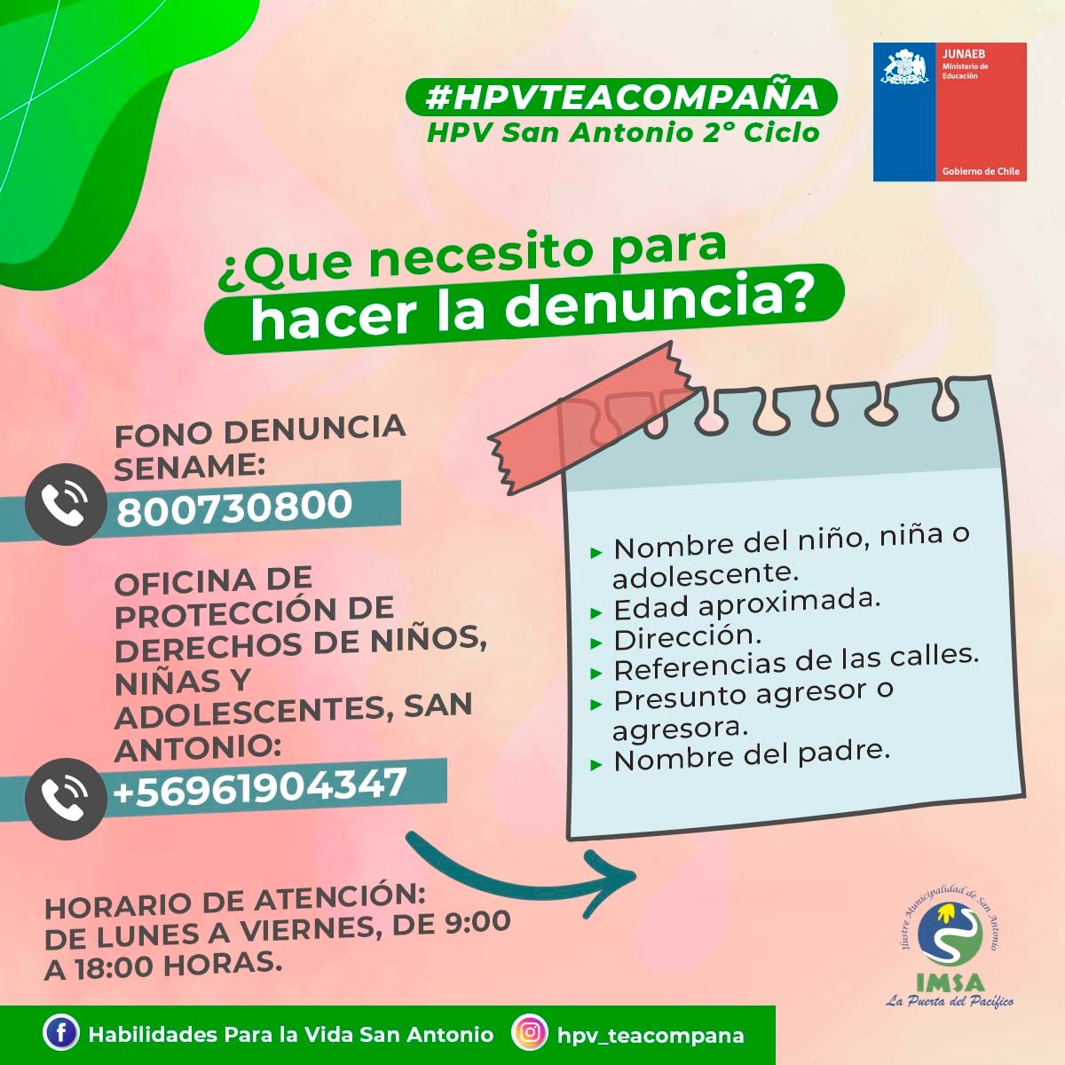 ¡Buen día! Compartimos con ustedes un material de apoyo elaborado por el Programa Habilidades para la Vida, el cual está destinado a orientar y guiar frente a situaciones de maltrato infantil/adolescente, explicando cuales son los procesos de denuncia y los canales apropiados para su correcto proceso.